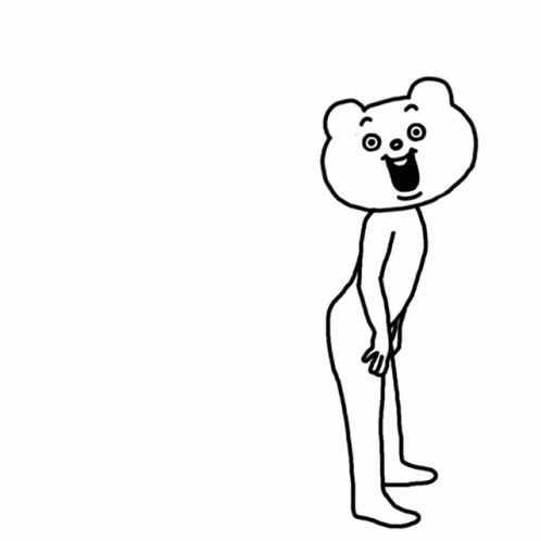 Betakkuma character dancing with a creepy smile and upbeat energy.