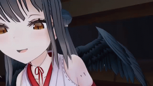 Yamagami Karuta's close-up kiss face with a playful expression, featuring her dark wings.