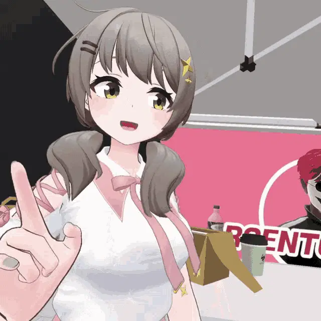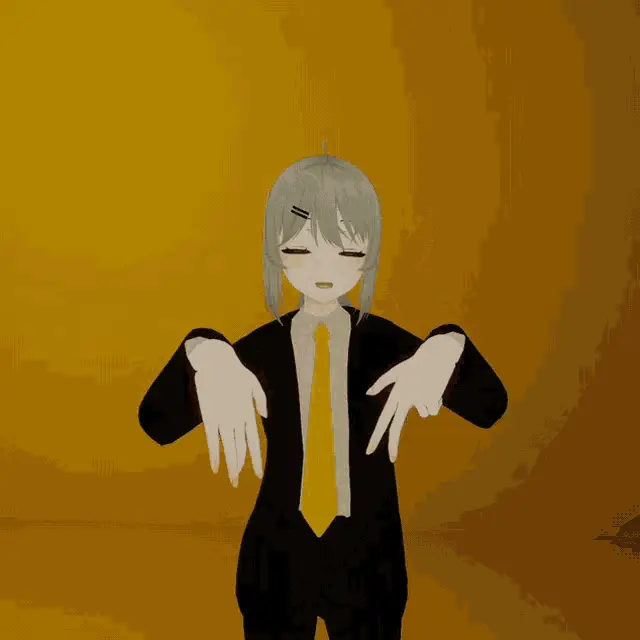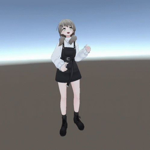 Viichan (비챤) dancing in a black overall dress and white long-sleeved shirt in a virtual environment.