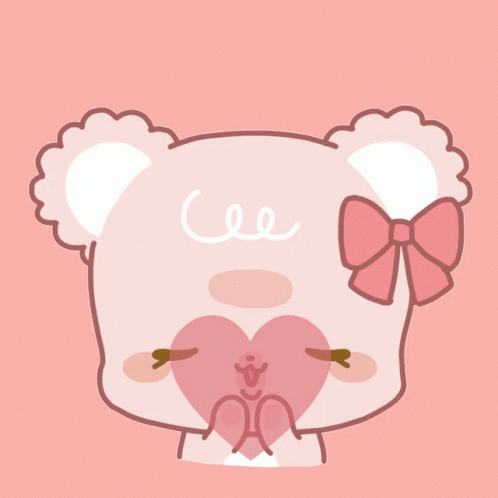 A cute pink teddy bear character from Sugar Cubs with a pink bow and a swirl, blowing a kiss.