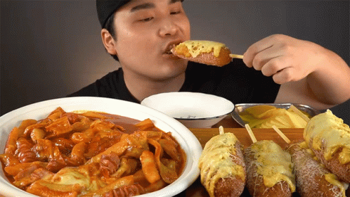 A man enjoys a delicious Myeongrang Triple Cheese Hot Dog mukbang, showcasing the cheesy goodness.