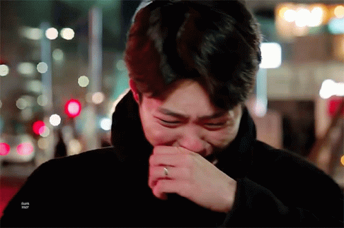 Park Bo-gum crying with tears, covering his mouth with his hand, wearing a ring.