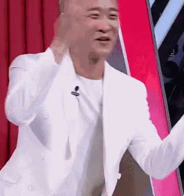 A man in a white suit reacts with a disgusted expression as the Chinese caption '好臭' (So smelly) appears.