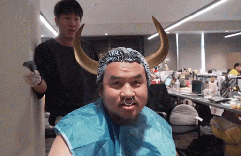 Nongmax (แม็ก, หน่องแม็ก) with buffalo horns and a nose ring gets his hair dyed in this Badofficial video.
