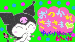 Kuromi-chan pixel art animation with a message to rest and relax.