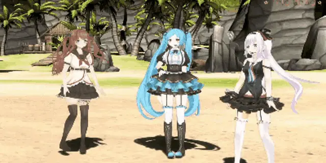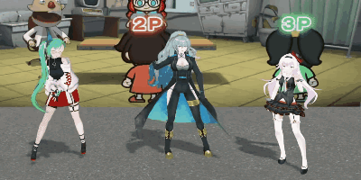 three anime characters are standing next to each other with 2p and 3p written above them