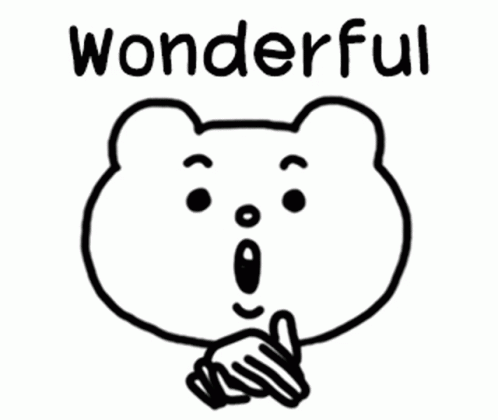Betakkuma, the animated bear, claps enthusiastically with the word 'wonderful' displayed above.