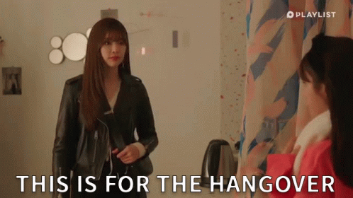 Lee Harim hands something to Jin Yeju, saying "This is for the hangover."