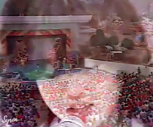 Japanese idol Nakamori Akina singing into a microphone in slow motion, with a pink ribbon in her hair.