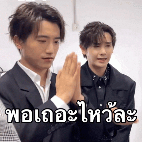 Bo Yuan performs a wai gesture, seemingly pleading or asking for something to stop, with another person in the background.
