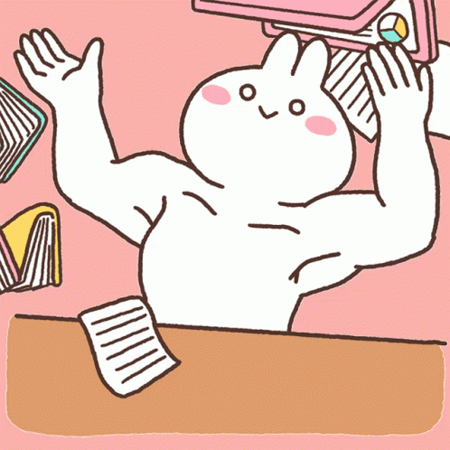 Mimi And Neko's Mimi, a cute rabbit, busy working on a pink laptop with an apple logo.
