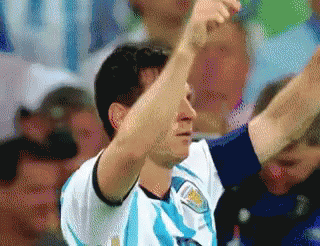 Lionel Messi on the field during a World Cup football match, wearing his Argentina national team jersey.