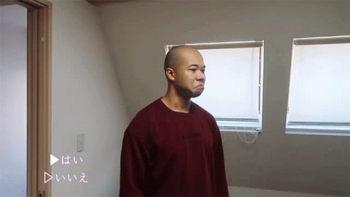Brian Jesse reacts with a conflicted expression, seemingly agreeing reluctantly, with Japanese captions 'Yes' and 'No'.