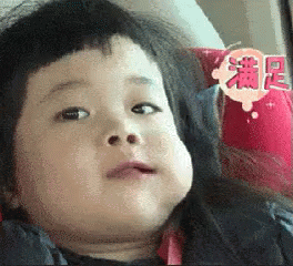 A satisfied child with puffed cheeks, happily eating in a car seat, showing contentment.