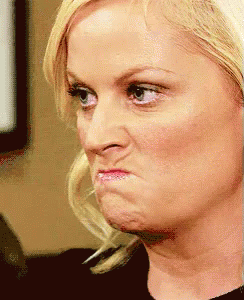 A blonde woman makes a disgusted and disdainful face, with the word "NO" appearing as a strong refusal.