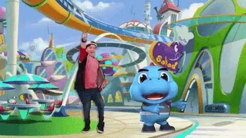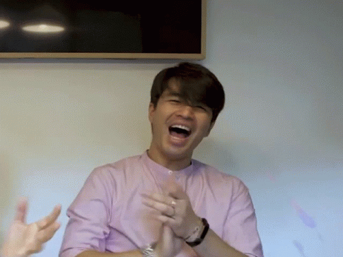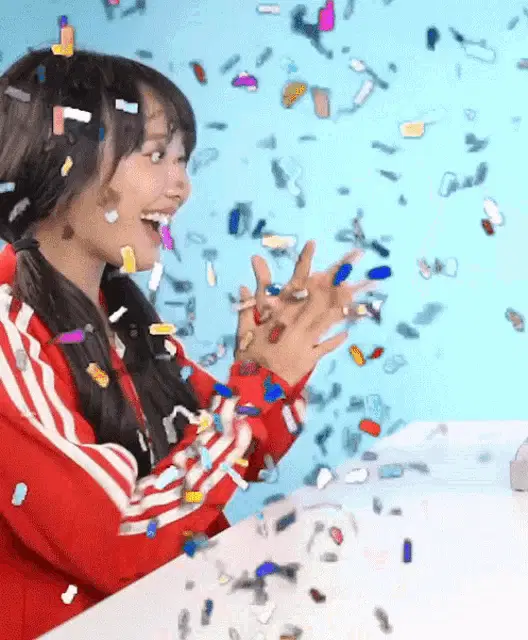 Wan Thanakrit enthusiastically claps his hands and laughs as confetti falls around him.
