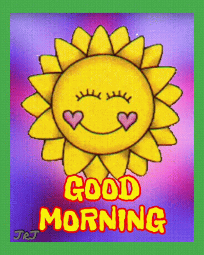A cheerful animated sun with hearts for eyes, joined by cute cartoon animals, wishing 'Good Morning' in English and Chinese.