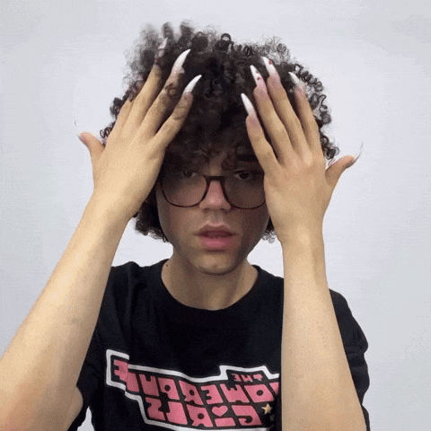 אביתר אברג’ל מציג את ציפורניו הארוכות, לובש חולצה שחורה עם הדפס ומשקפיים.