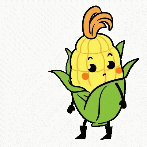 Rock Corn, a cartoon corn on the cob by Chow Hon Lam, gets scared and jumps back in surprise.