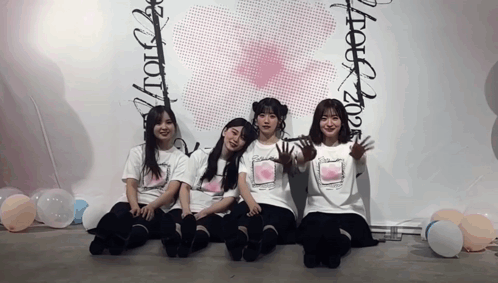 a group of girls are posing for a picture in front of a sign that says ' talk '