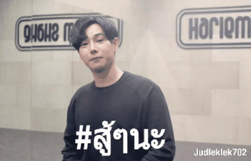 Peck Palitchoke (Pikky) smiling and showing support with the hashtag #Fighting.