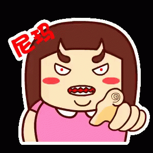 An animated girl with horns angrily points her finger at the camera, expressing strong emotions.