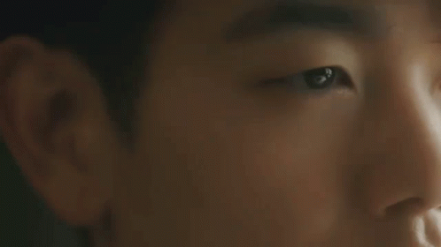 A close-up of Eric Nam's face as he slowly closes his eyes, showing a moment of calm.