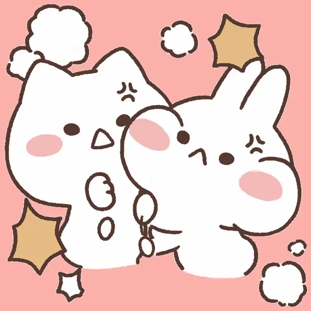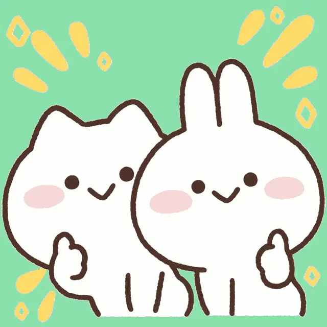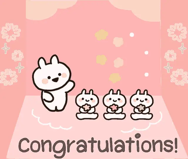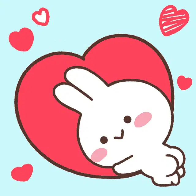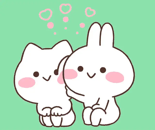 Cute animated bunnies, Mimi and Neko, celebrate a happy marriage with a heart and 'You married!' text.