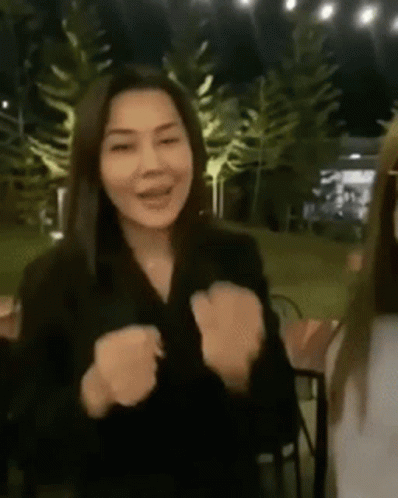 สสเปิ้ล and สสอิ่ม (Kittanya) making playful gestures and funny faces at night.