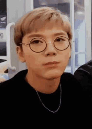 Ten (Chittaphon Leechaiyapornkul) from NCT/WayV, wearing glasses and a necklace, making a funny pouting face.