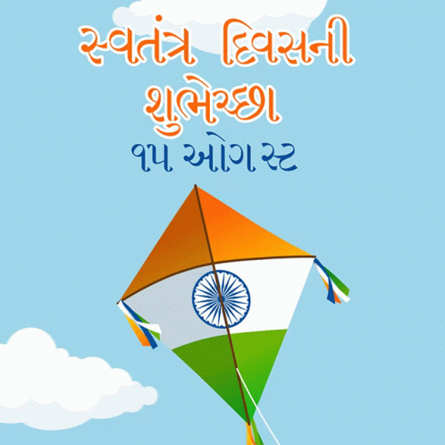 A vibrant Indian flag kite flying in the sky, celebrating 15 August Independence Day.