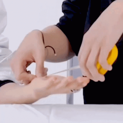 Dongren and Renhyuck's hands being measured for an Allure Korea magazine feature.