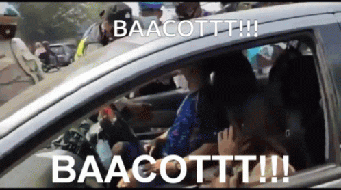 People in a car during 2021 Mudik, with 'BAACOTT!!!' text on screen, possibly a confrontation.