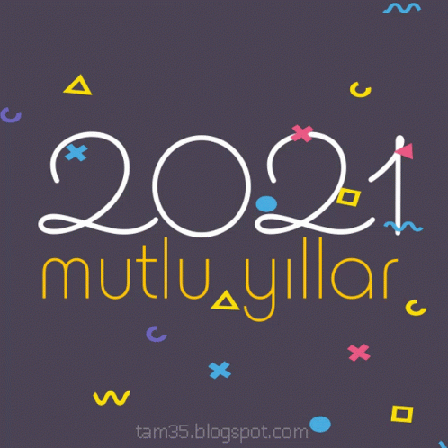 A vibrant greeting for 2021, featuring 'Mutlu Yıllar' (Happy New Year) on a festive purple background.