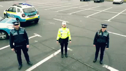 Romanian police officers and cars form the year '2022' in a parking lot, captured from above.