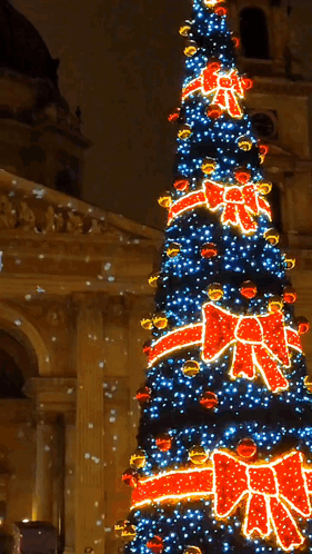 Spectacular Christmas tree and New Year 2024 projections on St. Stephen's Basilica in Budapest, Hungary.