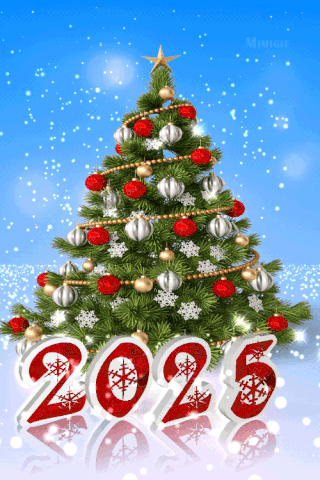 A festive Christmas tree adorned with ornaments and snowflakes, celebrating the upcoming year 2025.