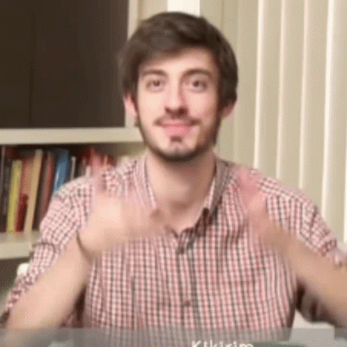 Man with a beard and plaid shirt making expressive hand gestures and smiling. Features MaréGeek and Kikirim.