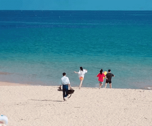 Friends from Twenty Five Twenty One enjoying a sunny day, walking and playing on a beautiful sandy beach.