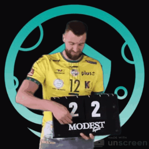 Man in yellow jersey celebrates enthusiastically while holding a scoreboard displaying '3 2'.