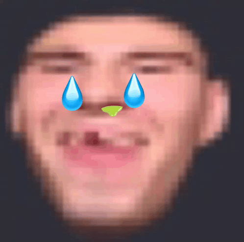 Pixelated 3head meme face with tears and snot emojis, smiling with a missing tooth. Related to lilzoeyzo and zoey.