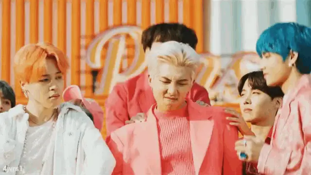 Four colorful anime characters, two male and two female, perform a dynamic dance routine on a vibrant purple stage.