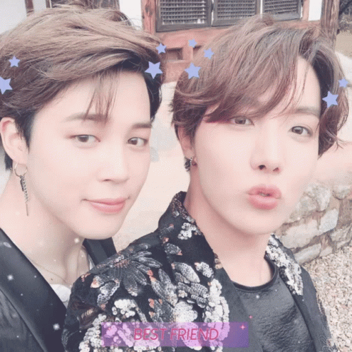 BTS members Jimin and J-Hope share a sweet best friend moment, smiling for the camera.