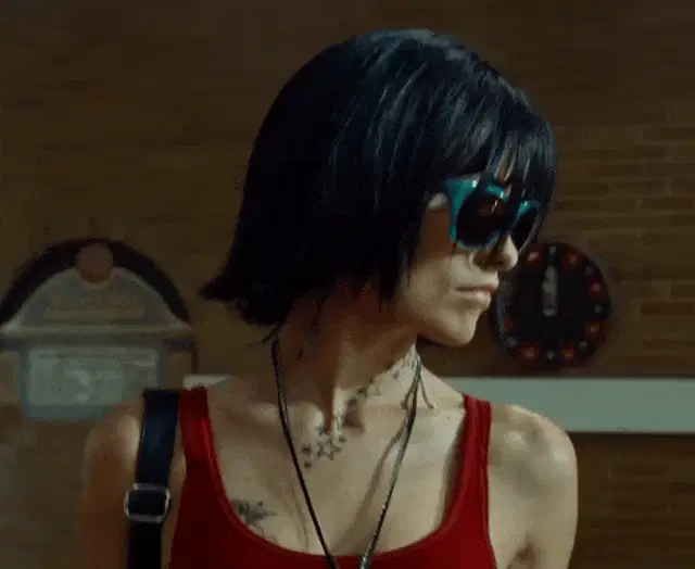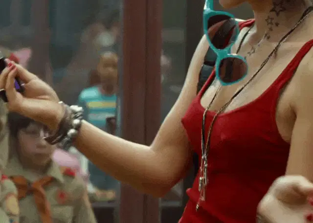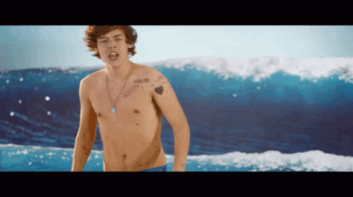 Harry Styles shirtless, playfully showing his chest and the rumored four nipples.
