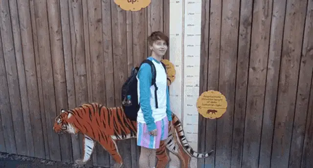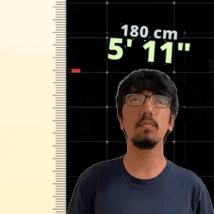 a man standing in front of a ruler that says 152 cm 5 ' 0 "