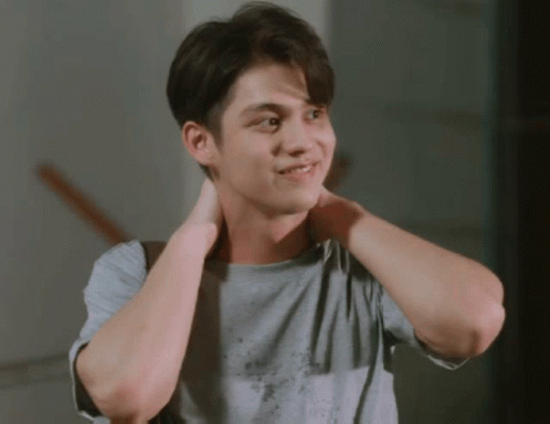 Bright (Sarawat) from 2gether The Series laughing and smiling, holding his neck.
