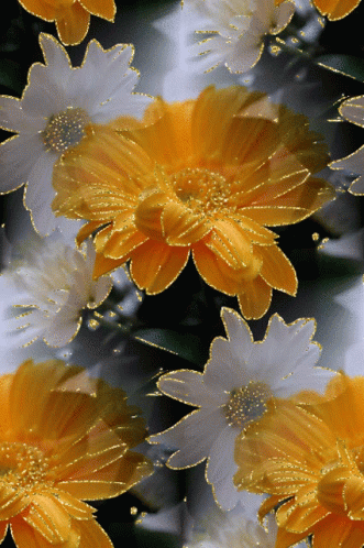 A vibrant bunch of yellow and white flowers, enhanced with sparkling effects.