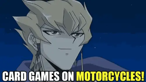 Dynamic animation of a Yu-Gi-Oh! 5D's Synchro Summon with on-screen text.