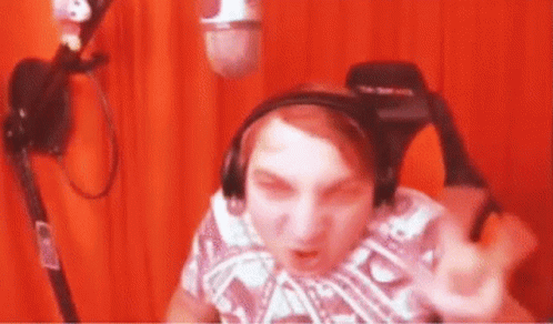 5opka, a man wearing headphones, sits in a studio with his tongue out, in a red-tinted scene.