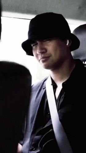 Calum Hood of 5 Seconds of Summer, wearing a black bucket hat, nods in agreement.